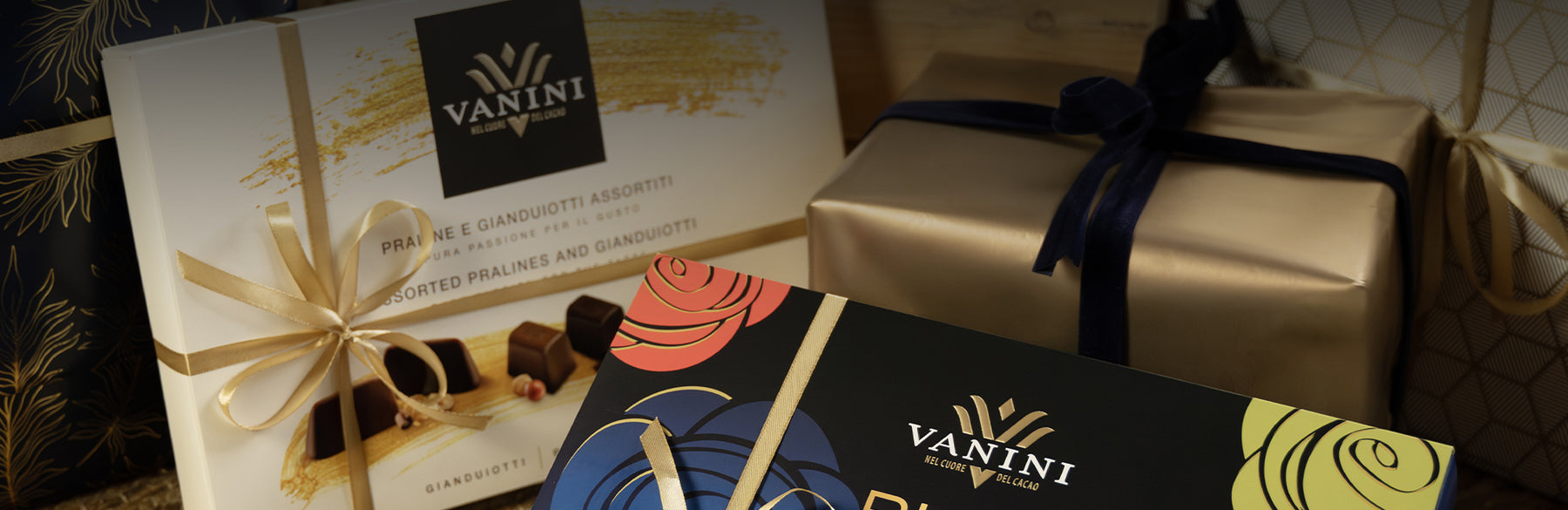 Vanini propone per questo Natale una novità assoluta: la scatola regalo in latta contenente l'intera collezione di praline Blue Rose, perfetta per ogni occasione.