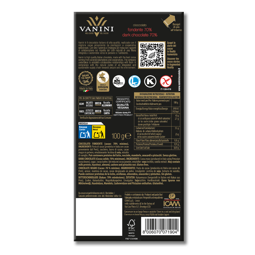 Tavoletta Vanini Monorigine Perù Fondente 70%