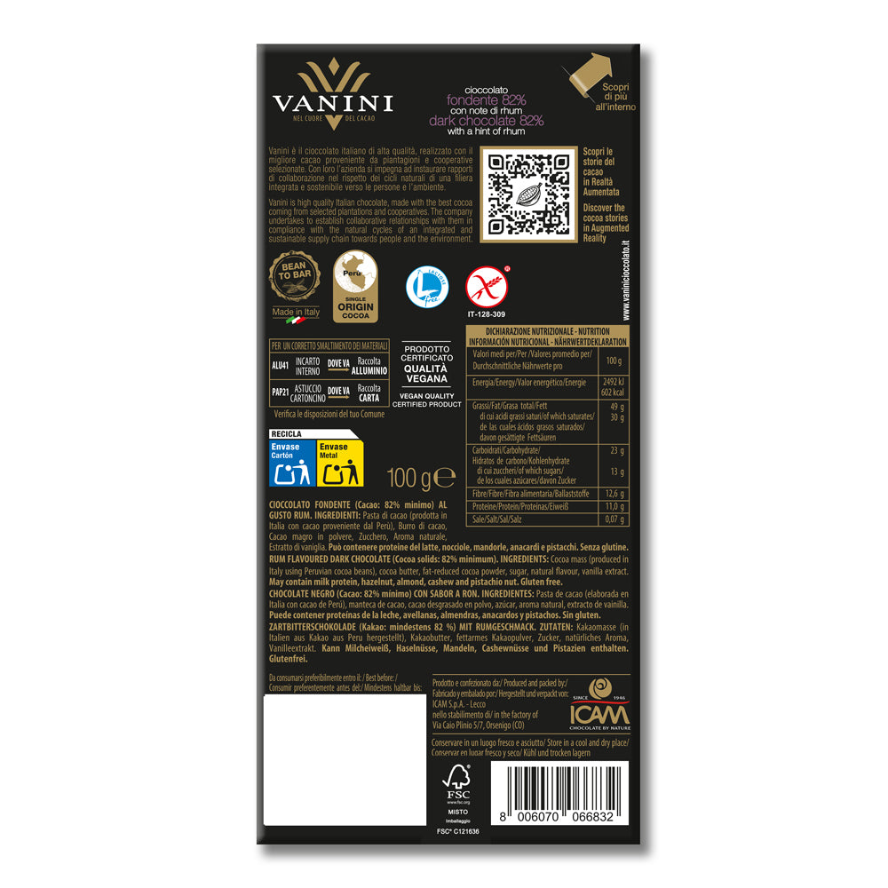 Tavoletta Vanini Monorigine Perù Fondente 82% con note di rhum